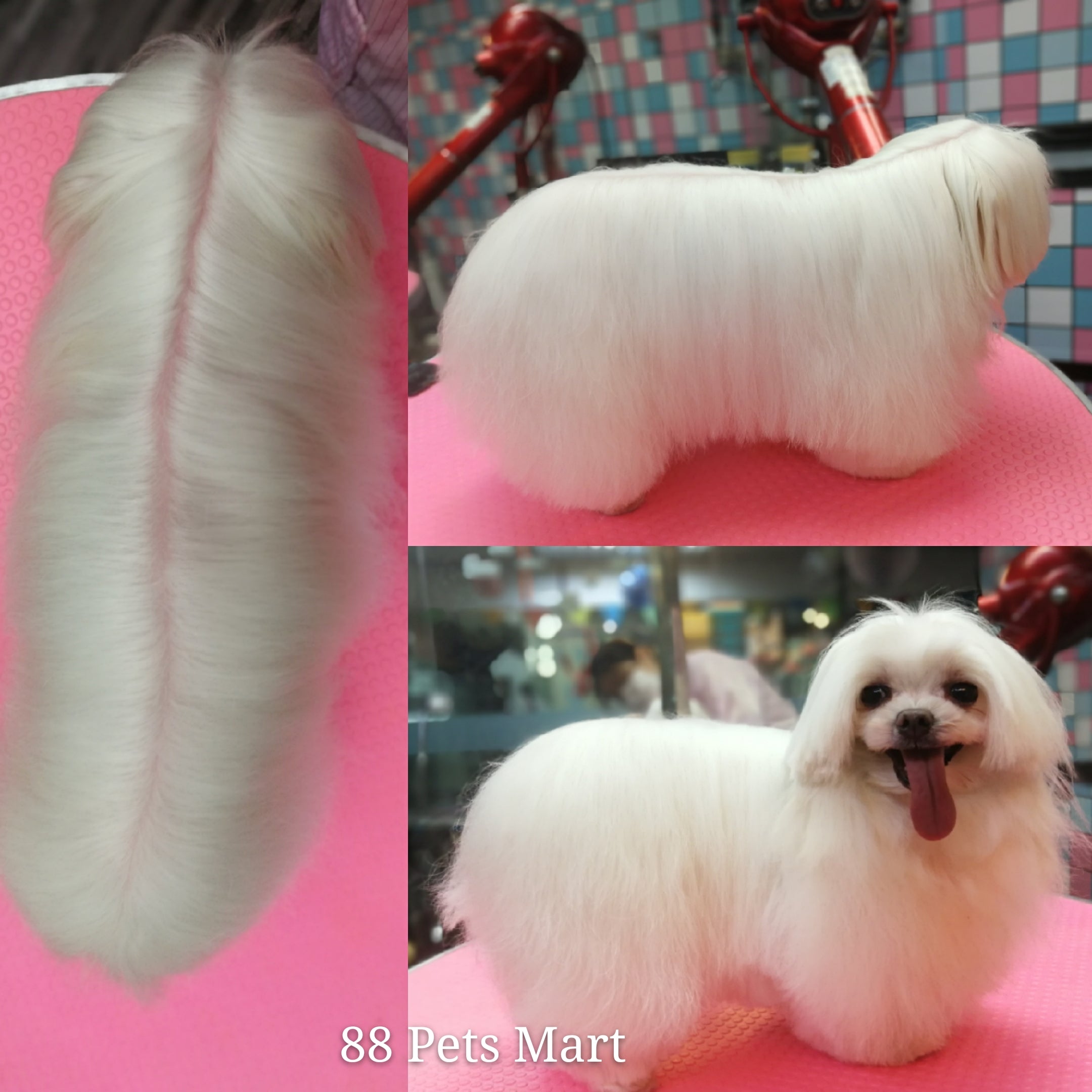 Bath and blow dry, nail trimming, ear hair removal, ear cleaning, hair shaving at paws, anal, and stomach area, hair trimming at eyes and legs, and anal gland cleaning are all included. These are the basics of dog care. The dog grooming service may differ slightly depending on the dog breed. It is recommended that you schedule a basic dog grooming every 1 to 2 weeks. The importance of nails trimming, paw hair shaving, belly hair trimming, ears cleaning can be referred to our dog care tutorials.