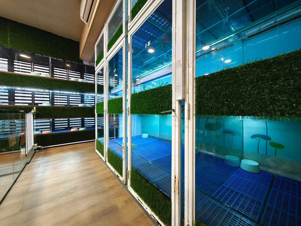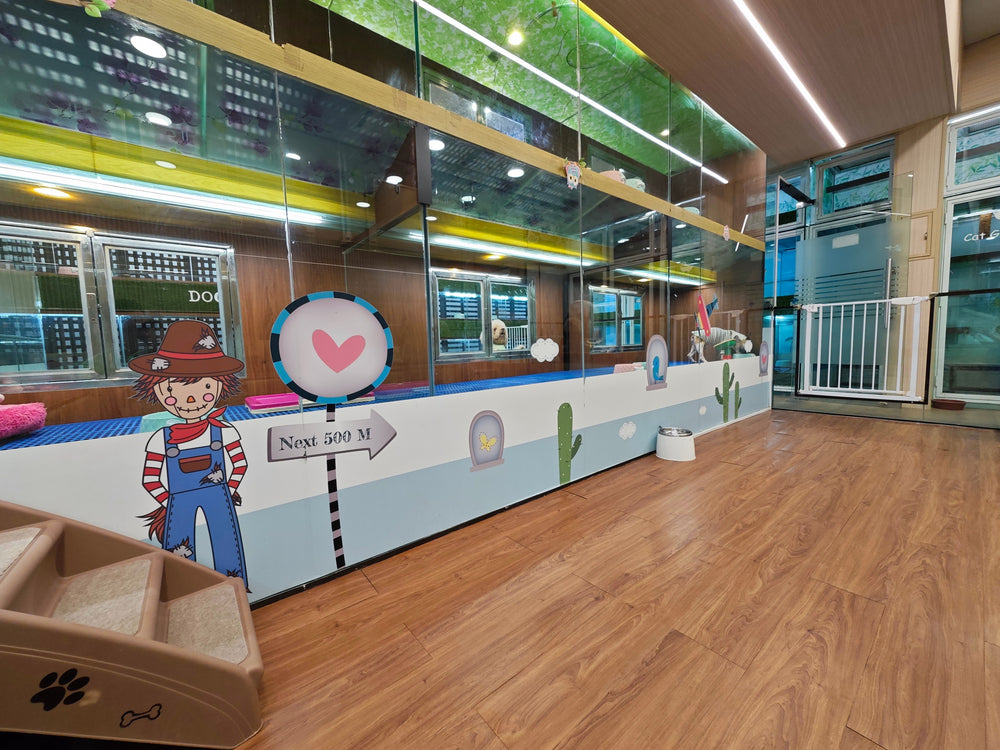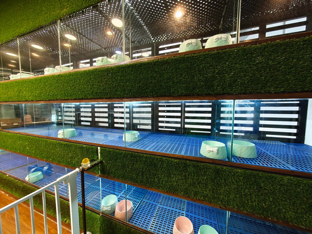 Nobody enjoys being crammed inside a metal cage. Your fur kids staying at our dog hotel daycare can enjoy themselves at our Play Zone during the day. They can even make new friends! They retire to their air-conditioned glass room at night to rest and eat without being disturbed by others. We ensure only sociable and friendly doggies are allowed in our Play Zone. We have Play Zones for doggies with different characters at our dog hotel Malaysia.
